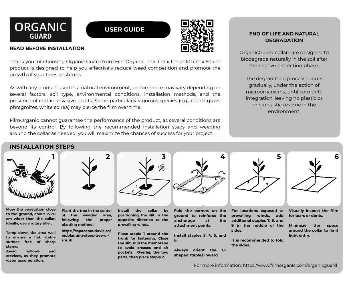 OrganicGUARD is designed to perform in the same conditions where polyethylene is traditionally used — exposed sites, hardwood plantations, reforestation projects and low-maintenance installations.